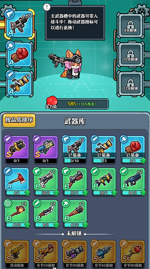 1. 主武器槽里的武器能够在战斗中使用,佩戴副武器不仅可以提升战斗内武器刷新的几率,而且佩戴武器还能增加火力值,使战斗变得更为轻松。
