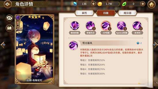 接着要介绍的是拉姆·夜梅星灯,它的AP技能在能量储备充足时能够实现持续的爆发性输出,借助拉姆自身的暴击效果可以打出极为强劲的伤害,想要将对面的敌人打至残血状态自然也不在话下。
