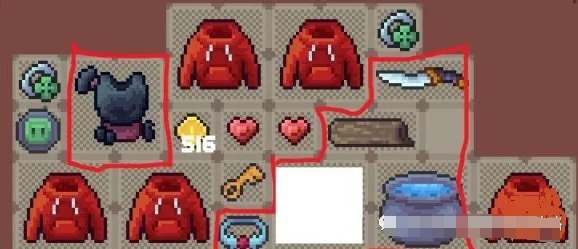 由于星星药水存在触发大诅咒的概率,因此需要保留图中所示的4格空白区域,以便放大诅咒效果后用辟邪手镯将其销毁。