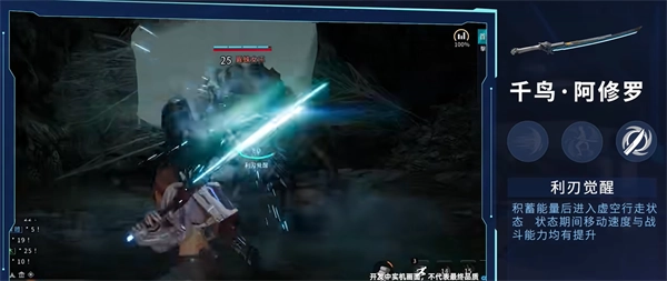 积蓄能量后可进入虚空行走状态,在此状态下,移动速度与战斗能力都会得到提升;当手持千鸟阿修罗时,原本的翻滚动作会替换为突进,且最大储存次数将从2次增加至3次。