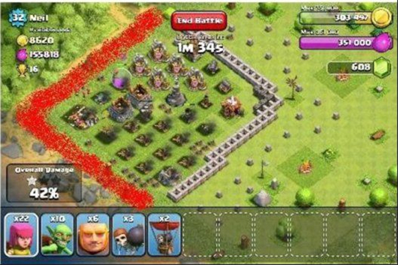 3、战斗时得留意不同部队畏惧哪些防御塔,这样出兵时才不会被对方迅速消灭。只要避开这些强势的防御塔,就能轻松摧毁对方的部落并掠夺金币。