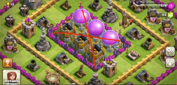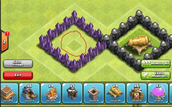 2、城墙是防御和守护资源的得力工具,不过单纯用城墙把防御建筑圈起来,其实不会给对手造成太大麻烦。不少新手常犯的一个错误是,让防御建筑直接暴露在敌方远程攻击的射程内,这种情况下,对手只需派几个弓箭手或法师就能轻松摧毁一个防御设施。更合理的布局方法是,在有围墙保护的防御建筑外侧摆放一些非防御类建筑,这样既能吸引敌人的火力,又能让己方防御持续发挥作用。需要留意的是,地图的四条边缘不能用来代替城墙阻挡敌人进攻。