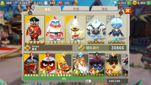 4、怒鸟红:团队内所有红色小鸟攻击力增强30%。