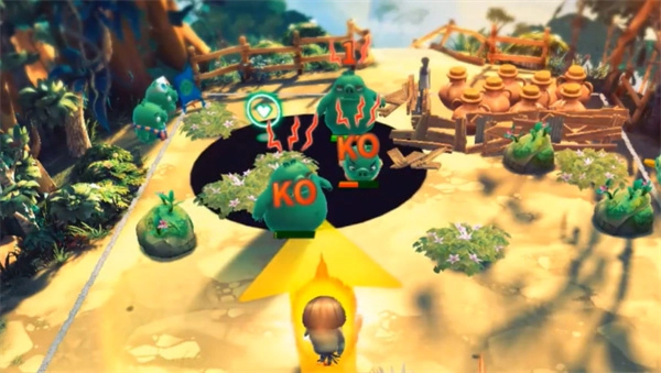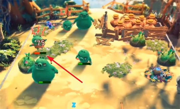 3、小猪身上会显示血条,当血条数值变为零时,就能成功将其击败。