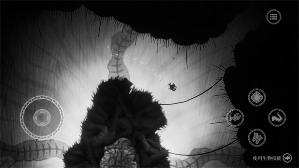 3、正式开始后,左侧控制角色移动,右侧的触手图案对应技能释放,鱼形图案可调用相应海洋生物的能力,头盔图案是探照灯功能,脚蹼图案则用于加速。