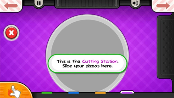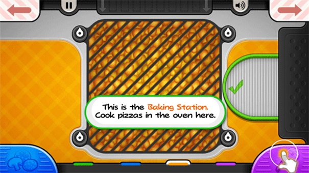 烤披萨时要留意火候,等左下角的“火”字变成橙色,就可以把披萨拖到切割站去切了。