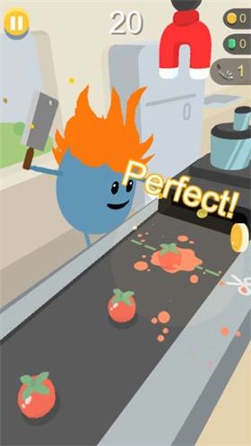 用刀具切割迎面而来的水果与蛋糕,以此来制作果汁,不过切记不要切到电器。
