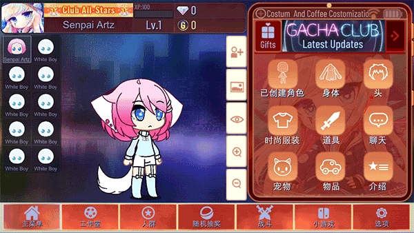 用当下最潮的动漫时尚来装扮你的角色,目前提供20个角色插槽供你使用。