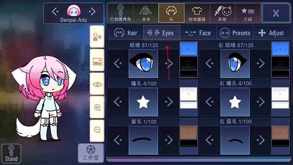 然后玩家可以根据自己喜好来选取角色眼睛;