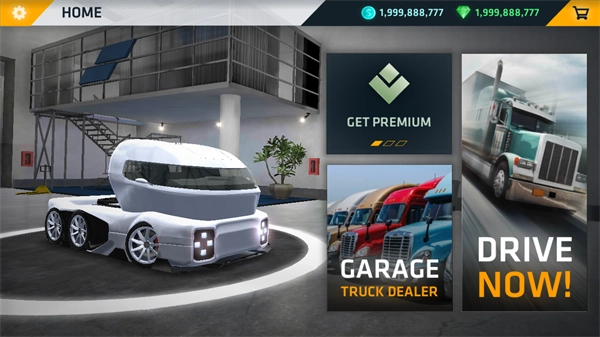 2、点击GARAGE,该页面用于车辆的选购,玩家能够挑选自己心仪的一辆卡车来开展游戏。