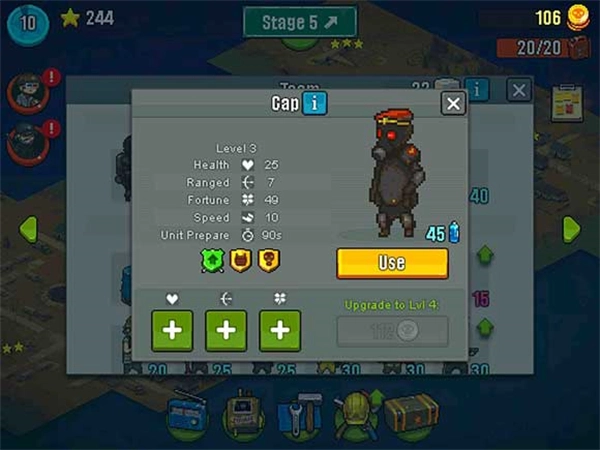装备防弹衣的单位,是游戏前期唯一具备防弹能力的角色,在挑战第三大关时建议优先选用。