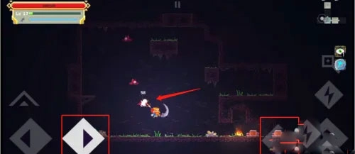 3、借助手机按键操作,清理洞穴地图里的小怪,利用跳跃能够更高效快速地消灭这些小怪。