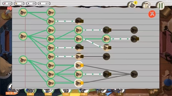 工人图标左下角的数字显示可派遣工人的数量以及数量上限,而右上角小圆圈里的数字则表示处于闲置状态的工人数量。