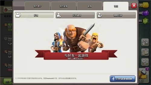 (2)玩家从好友界面里,可查询好友的在线情况、等级信息、村庄布置信息等。玩家还能与好友进行聊天,进行友谊对战。