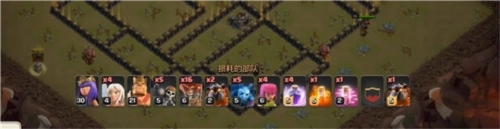在部落冲突游戏中暴力狗球流派主要依靠熔岩猎犬抗伤害并且让狂暴法术帮助气球肆无忌惮的输出,这里的援兵还带了一只天狗,更能保障气球的生命值健康。亡灵和弓箭手的作用主要是负责清边和收尾,数量不定,可以根据个人喜好调整。