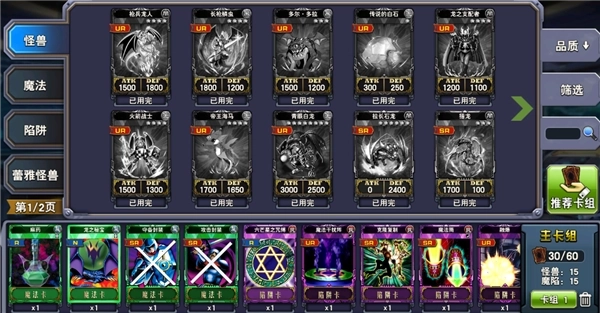 2、怪兽卡:上下拖动可调整战斗阵容中的怪兽卡牌