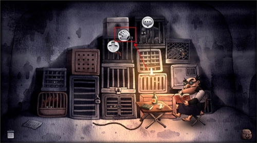 之后切换至放大镜视角,再回到外部场景,点击灯光,借助铁管将灯敲灭,灯熄灭后看守者便会离开。