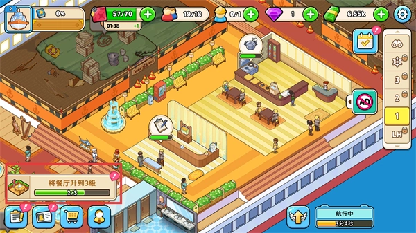 3、注意餐厅升级到3级的进度,需完成剩余条件来提升餐厅等级,解锁更多功能。