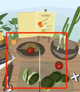 3、接着把食材点击放置在菜板上,挑选刀具加以处理。
