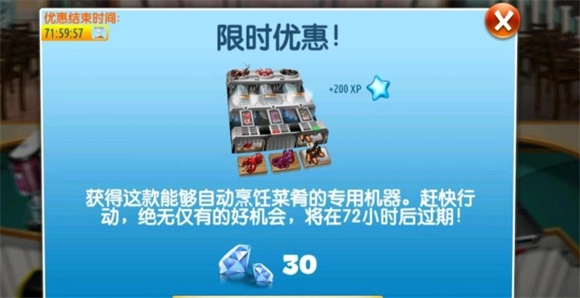 4、中餐厅自动烹饪机,可同时自动烹饪虾、鱼、鸡肉,该功能在第21关通关后解锁。