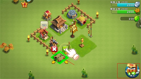 建设第一步:兵马未动,粮草先行,我们得先把自己的农田和银矿建起来!操作步骤是点击商店,进入资源分类,然后选择农田或者银矿。