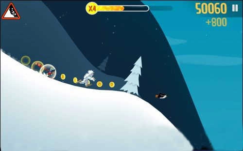 它的出现概率仅次于企鹅,刚骑乘时移动速度很快,可一旦遭受一次撞击,就会切换成滑雪状态。在滑雪状态下,如果再碰到一只企鹅,就能把企鹅带在身旁,它能帮你抵挡一次冲击。不过你最多只能携带一只企鹅,要是加上雪人,就能抵挡两次冲击了。但雪人的动作比较笨拙,你要是想靠它来完成翻跟头的动作,结果往往会摔得很惨。