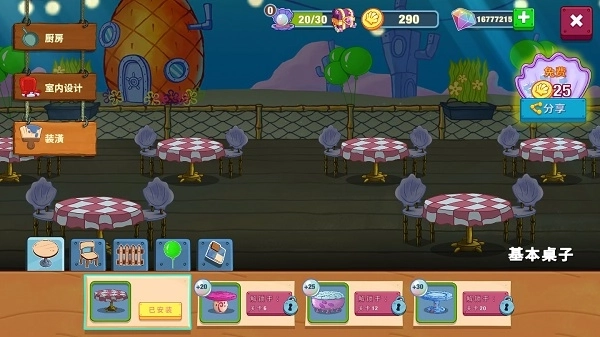 另外,为了能够吸引更多的海底顾客,店内的装饰以及室内的装修设计都是提升餐厅知名度的实际效果,所以这里提供了丰富的选择性来让玩家自由定制专属您的店铺风格!