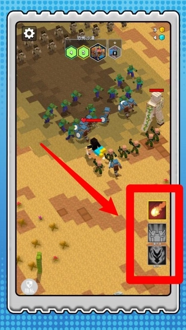 2.通过点击屏幕右侧的技能按钮来释放火球术、防御墙等不同技能,巧妙搭配这些技能能够高效消灭敌人,甚至改变战斗的走向。