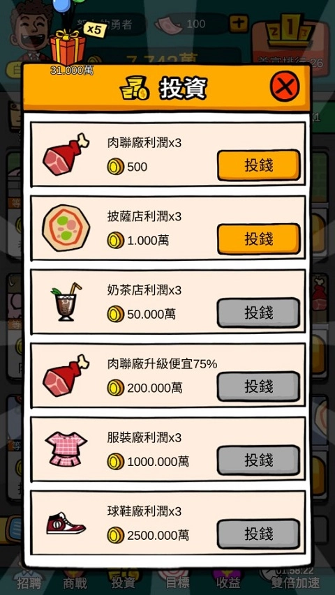 投资并非随意撒钱,而是精准施策的灌溉之举:向产能不足的工厂追加资金,可直接增加当日收益;为新项目提前投入资金,通常能引发连锁效应。