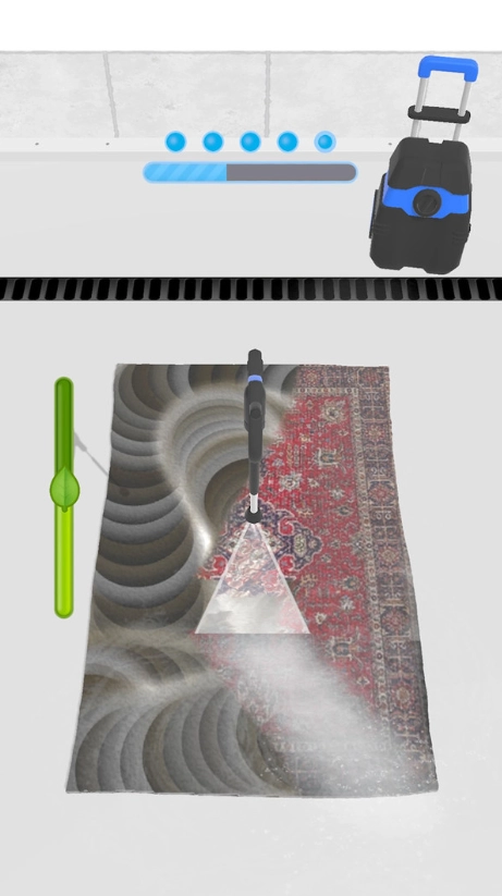 还原现实中的地毯清洁流程,从喷洒清洁剂到高压水枪冲洗,每一步操作都充满沉浸感。