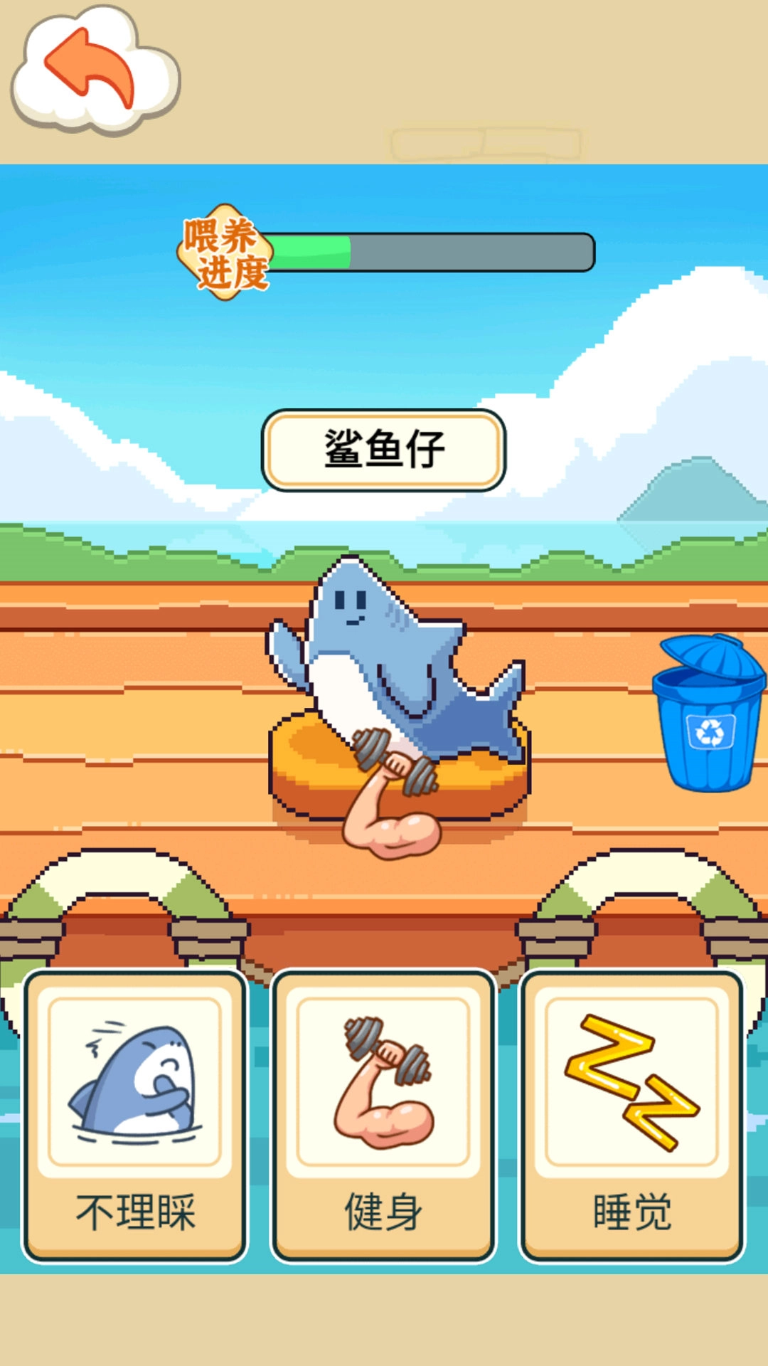 养只小鲨鱼安卓版是一款创意十足的像素风鲨鱼养成游戏。玩家可以通过喂食、训练、升级等方式,把自己的小鲨鱼一步步培养成威猛的大白鲨。游戏采用像素风格的画面,让玩家沉浸在简约又有趣的游戏世界里。玩家需要关注小鲨鱼的饥饿程度、健康状况和成长进度,及时采取行动,帮助小鲨鱼健康成长。