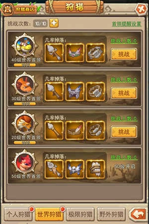 游戏内设有个人、世界、极限等不同类型的首领可供挑战,成功击败这些首领将有机会获得各类高阶装备。