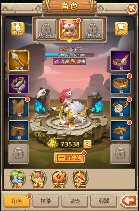 3、借助完成主线任务获取的各类资源,能够对角色进行培养,比如穿戴装备、提升等级等。