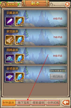 游戏内设有独特的材料福利机制,涵盖羽翼、家园、图腾、坐骑四大副本关卡,能帮助玩家高效获取各类玩法升级所需的材料,此外还有熔岩道场、地下宝库等多种副本玩法可供解锁。