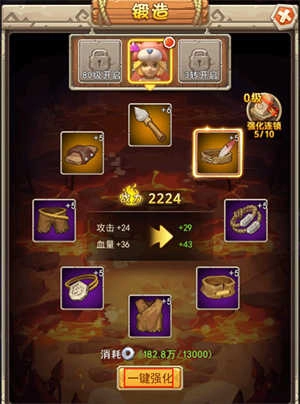 游戏里的所有装备都能进行锻造,首要的就是强化环节,通过一键操作就能完成全部装备的强化,从而显著提升装备的属性。