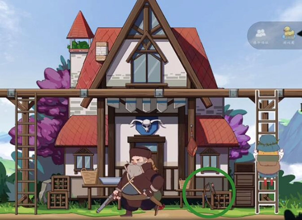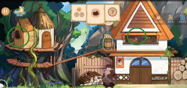 点击树上的逢魔,拿到蜂窝后扔给猎人,猎人会通过OA路获取帽子,这样就能过关了。