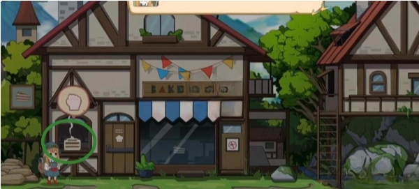 把蛋糕放在右边那栋房子的窗台上,接着下楼,再去取一个蛋糕。