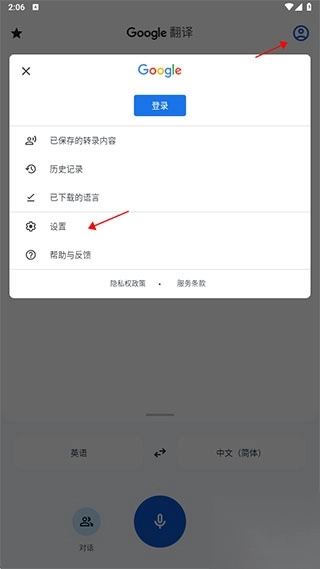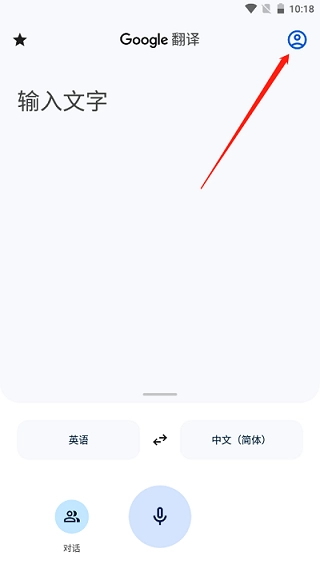 1、打开谷歌翻译app,点击右上角用户,