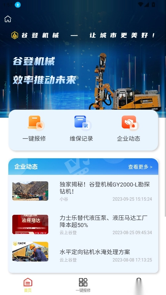 谷登机械最新版是一款集成设备报修、企业动态、服务评价等多功能的软件。用户可通过它快速提交故障设备报修申请,并实时追踪工单处理进度,实现报修流程全透明,随时掌握处理状态;还能对维修服务进行评价反馈,提出改进建议。此外,软件提供设备保养服务,支持用户新增保养项目,及时对各类设备进行保养维护;绑定设备后,可随时查看设备档案详情,并对设备运行状况进行实时监控管理。同时,软件会实时推送企业动态信息,方便用户及时了解企业最新资讯。有需求的用户,欢迎前来使用谷登机械软件!