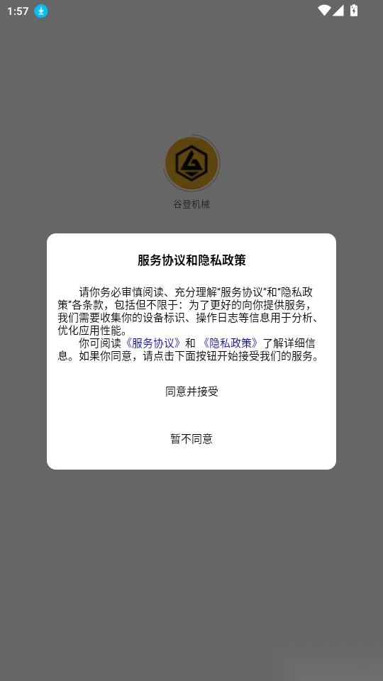 打开软件后,阅读“服务协议和隐私政策”,点击“同意并接受”按钮即可进入。