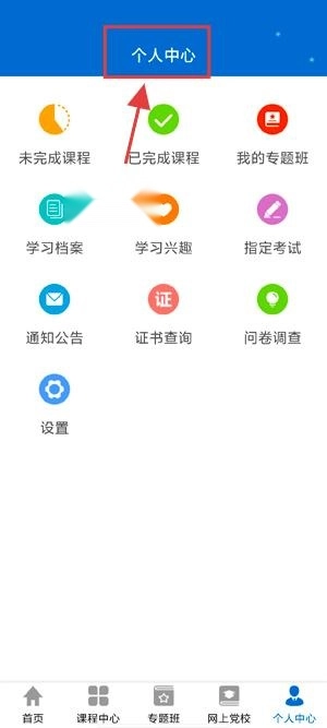 个人中心:用户可在此查看并管理自身的学习记录、学习档案、已选课程等各类个人相关信息。