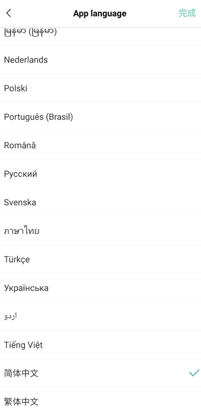 3、最终在语言里面找到中文选择确认即可设置成功。
