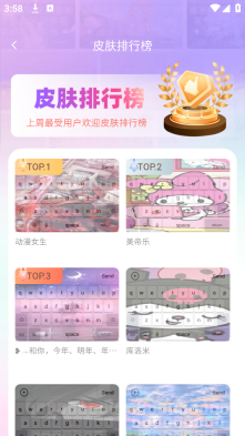 4、主题键盘皮肤更设有皮肤排行榜让用户挑选设置。