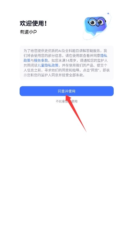 1、初次使用需阅读平台服务条款与隐私政策,确认后点击同意并使用进入应用。