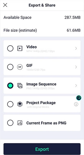 导出任何人都可以使用Alight Motion编辑的视频、GIF或项目包。