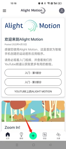 如何使用AlightMotion制作动画 【1】打开AM,点击“+”号就能新建项目