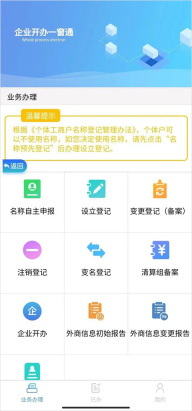 4、完成名称自主申报后,点击右上角“设立登记”进入设立流程。