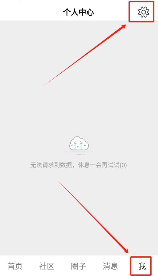 1. 开启淮南查查网软件,进入“我的”界面,寻找到右上角的设置图标并进行点击。