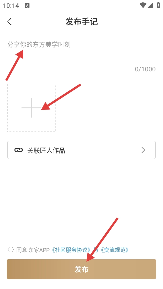 4、进入编辑页面,输入内容、图片,点击【发布】。