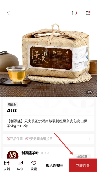 4、进入商品详情页,点击底部【立即购买】按钮,完成购买操作。